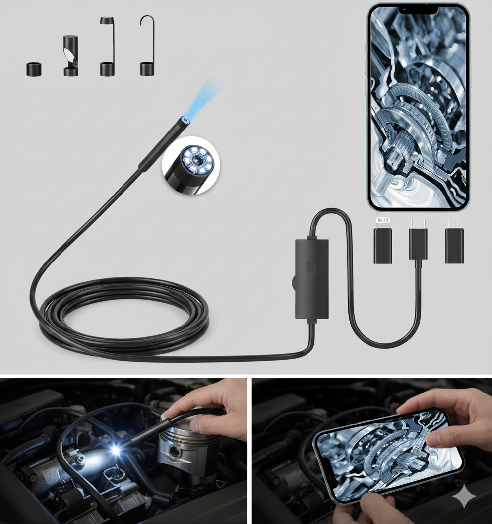 تعبت من "التفصيخ" بس حتى تشوف العطل وين؟ بهذي الكاميرا، تدخلها بقطر 7 ملم بس، وشوف كل شي بوضوح HD على موبايلك. اشتغل بذكاء وزيد إنتاجيتك!